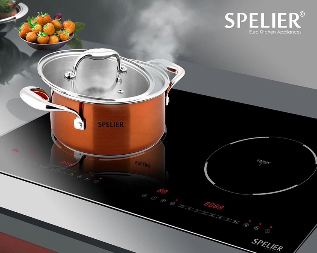 Bếp từ SPELIER SPM 928I plus thiết kế 2 vùng vùng nấu từ kích thước 220 x 220mm. Tự nhận diện vùng nấu điều này giúp tiết kiệm điện tối đa không gây lãng phí.