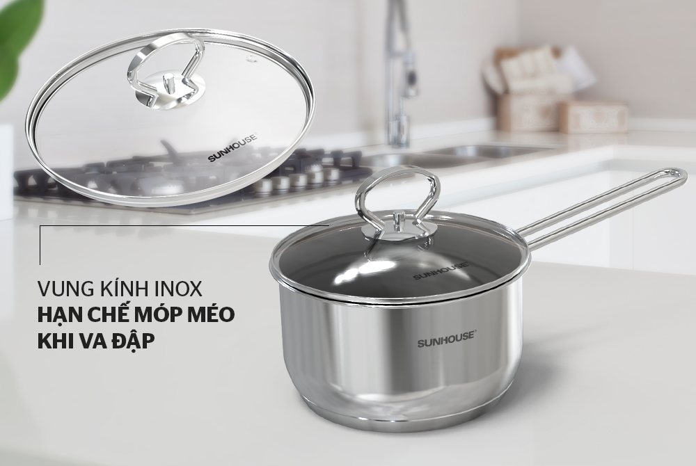 Bộ nồi chảo inox 3 món Easy Cook SUNHOUSE SHG993E được trang bị vung inox bền đẹp, sáng bóng và chắc chắn, hạn chế móp méo khi va đập.