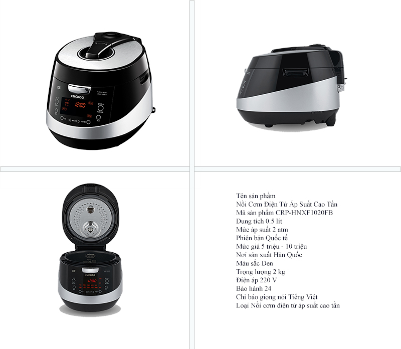Nồi Cơm Điện Tử Áp Suất Cao Tần Cuckoo CRP-HNXF1020FB